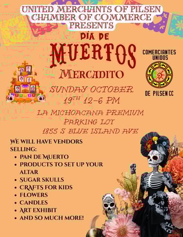 Join us on October 19, 2025, for a vibrant market featuring altars, candles, sugar skulls, and more for your DAY OF THE DEAD altars remembering your loved ones who have become angels in heaven!